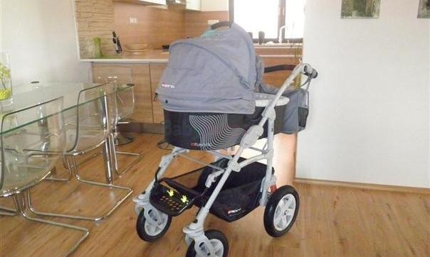 Predám kočík Espiro Antlantic 2011 kupovaný v apríli 2012 /v záruke/. Používaná len hlboká vanička a autosedačka./ Strieška na vaničke je z časti odopináteľná / využitie v letných mesiacoch/ , vnutorný poťah sa dá prať. Autosedačka obsahuje striešku, nánožník a vložku pre novorodeniatka, ktorá sa dá neskor odstrániť. Športová časť nepoužitá, polohovateľná opierka chrbta, zateplený nánožník. Ku kočíku je taška, prebalovacia podložka. Pláštenka, sieťka proti hmyzu/ neboli súčasťou/. Rukoväť je polohovateľná. Kolesá su nafukovacie, pumpička ku kočíku. Predné kolesá sa dajú otáčat /ale aj zablokovať/. Farba vhodná aj pre dievčatko a aj pre chlapčeka. Vo veľmi dobrom stave len malá odreninka./viď foto