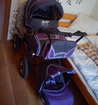 Predám 2 mesiace používaný kočík, trojkombinácia značky VR Connect, nepoškodený vyzerá ako nový sivo - fialové prevedenie + vnútorná menšia vanička na prenos bábätka, autosedačka (dá sa pripevniť do kočíka) a taška ku kočíku tiež v dobrom stave. Dofúkateľné kolesá. Kočík ešte v záruke.